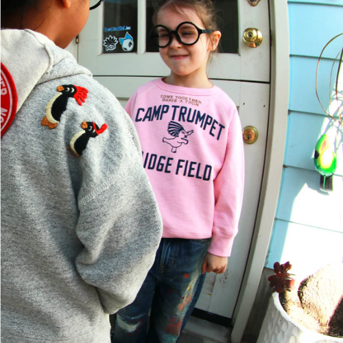 後ろの落書きとワッペンが可愛いスウェット。
